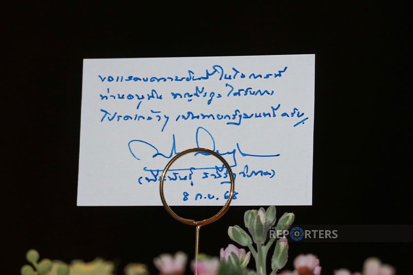 สำหรับบัตรอวยพรที่มาพร้อมดอกไม้ เขียนด้วยลายมือ ของนายพีระพันธุ์ ข้อความระบุว่า “ขอแสดงความยินดีในโอกาสที่ ท่านอนุทิน ชาญวีรกูลได้รับการโปรดเกล้าฯ เป็นนายกรัฐมนตรีครับ”