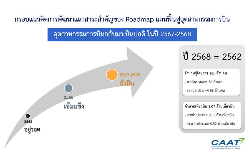 อย่างไรก็ตาม สำนักงานการบินพลเรือนแห่งประเทศไทย (CAAT) ได้ประมาณการการฟื้นตัวของผู้โดยสารซึ่งมีความสอดคล้องกับการคาดการณ์ของสมาคมขนส่งทางอากาศระหว่างประเทศ (IATA)