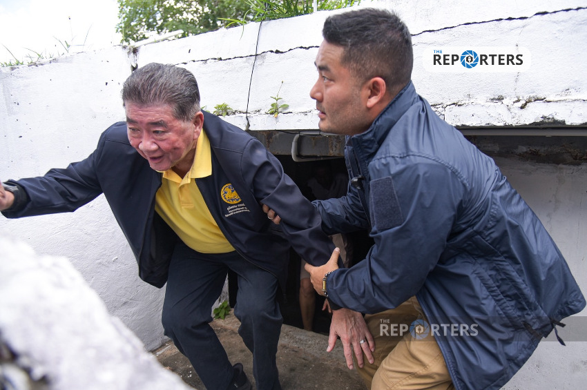 จากนั้นได้เดินมาดูหลุมหลบภัย อีกจุดหนึ่ง พร้อมระบุว่า ส่วนนี้ต้องให้ติดพัดลมไม่เช่นนั้นจะอยู่กันไม่ได้ ขอให้มีการตรวจให้เรียบร้อยจุดไหนที่ต้องมีการซ่อมแซมก็ขอให้บอก