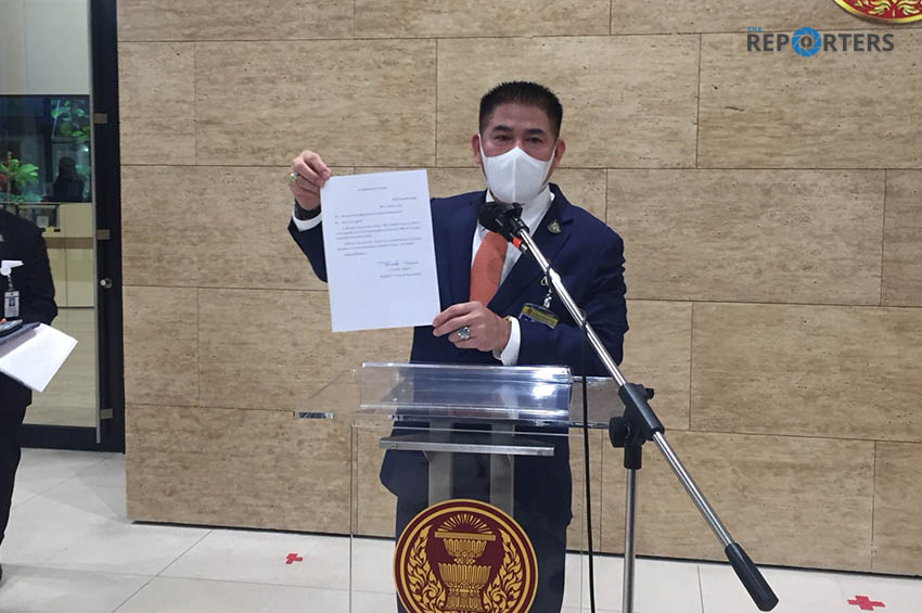 สำหรับหนังสือขอลาออกจากตำแหน่งรัฐมนตรีช่วยว่าการกระทรวงเกษตรและสหกรณ์ ของร้อยเอกธรรมนัส พรหมเผ่า ความว่า