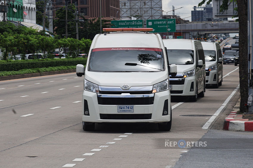 โดยนายทักษิณ ถูกนำตัวมาด้วยรถตู้ของเรือนจำพิเศษกรุงเทพ 3 คัน และมีรถตู้เบนซ์สีเทา 1 คัน หมายเลขทะเบียน 1155 ขับตามไปด้วย คาดว่าจะเป็นรถของทนายความ