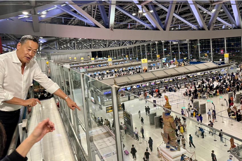 เมื่อเวลา 21:20 น. วานนี้ (9 เม.ย. 67) นายเศรษฐา ทวีสิน นายกรัฐมนตรี และรัฐมนตรีว่าการกระทรวงการคลัง เดินทางไปสนามบินสุวรรณภูมิแบบไม่แจ้งล่วงหน้า เพื่อตรวจระบบการให้บริการประชาชน และนักท่องเที่ยวในช่วงเทศกาลสงกรานต์ ซึ่งนายกรัฐมนตรีเคยมาตรวจในลักษณะนี้มาแล้ว 2 ครั้ง เมื่อช่วงเดือนกุมภาพันธ์ที่ผ่านมา โดยครั้งนี้เป็นครั้งที่ 3