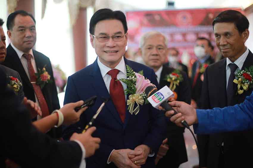 ขณะที่ นายอภิสิทธิ์ เวชชาชีวะ อดีตนายกรัฐมนตรี และอดีตหัวหน้าพรรคประชาธิปัตย์ ได้ร่วมเป็นสักขีพยานในงานพิธีส่งและรับมอบตำแหน่งนายกสมาคมฯ พร้อมกับได้กล่าวแสดงความยินดีกับสมาคม ที่ตลอดระยะเวลากว่า 50 ปี ได้เจริญเติบโต ก้าวหน้า ทำคุณประโยชน์มากมาย ทั้งสำหรับประเทศไทย และประเทศจีน รวมทั้งขอบคุณนายกสมาคมที่บริหารงาน จนถึงปัจจุบัน และแสดงความยินดีกับ นายสุกิจ โดยได้รำลึกถึงอดีตที่ตนได้มีโอกาสรู้จักกับนายสุกิจ ซึ่งถึงวันนี้เป็นเวลา 30 ปี ซึ่งท่านได้ดูแลพื้นที่ในฐานะ ส.ก. สมัยที่ตนไปลงสมัครรับเลือกตั้ง ส.ส. สมัยแรก