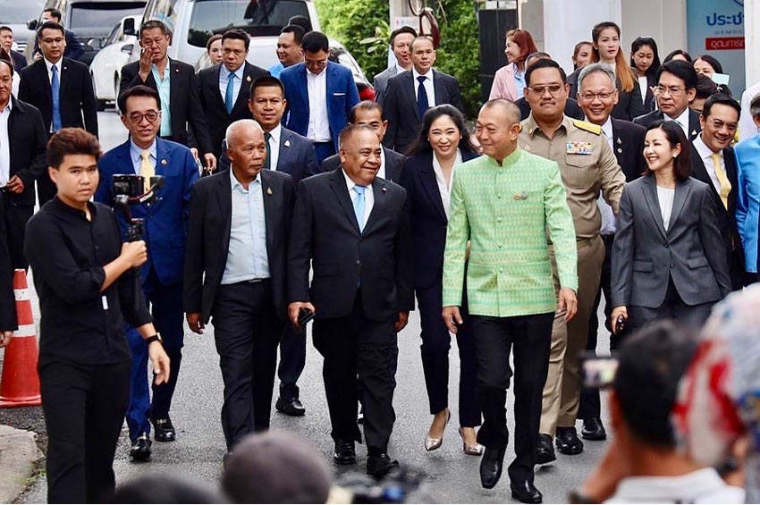 วันที่ (10 ก.ย. 67) นายเฉลิมชัย ศรีอ่อน รัฐมนตรีว่าการกระทรวงทรัพยากรธรรมชาติและสิ่งแวดล้อม ในฐานะหัวหน้าพรรคประชาธิปัตย์ สวมผ้าไทยสีเขียวอ่อน ถือฤกษ์เวลา 07.30 น. เดินทางเข้ามาสักการะพระแม่ธรณีบีบมวยผม สิ่งศักดิ์สิทธิ์ และตราสัญลักษณ์ประจำพรรคประชาธิปัตย์ ก่อนเดินทางเข้าปฏิบัติหน้าที่ที่กระทรวงทรัพยากรธรรมชาติและสิ่งแวดล้อมเป็นวันแรก โดยมีบรรดา สส.และกรรมการบริหารพรรคมาให้กำลังใจ และมอบช่อดอกไม้ อาทิ นายเดชอิมศ์ ขาวทอง รัฐมนตรีช่วยว่าการกระทรวงสาธารณสุข และเลขาธิการพรรค นายนริศ ขำนุรักษ์ รองหัวหน้าพรรค และ นายพิทักษ์เดช เดชเดโช สส.นครศรีธรรมราช
