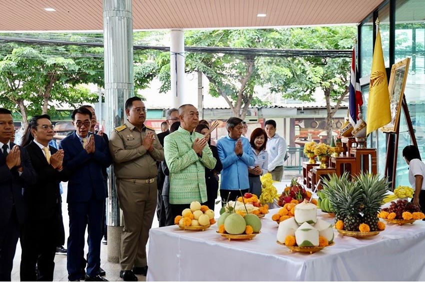 วันที่ (10 ก.ย. 67) นายเฉลิมชัย ศรีอ่อน รัฐมนตรีว่าการกระทรวงทรัพยากรธรรมชาติและสิ่งแวดล้อม ในฐานะหัวหน้าพรรคประชาธิปัตย์ สวมผ้าไทยสีเขียวอ่อน ถือฤกษ์เวลา 07.30 น. เดินทางเข้ามาสักการะพระแม่ธรณีบีบมวยผม สิ่งศักดิ์สิทธิ์ และตราสัญลักษณ์ประจำพรรคประชาธิปัตย์ ก่อนเดินทางเข้าปฏิบัติหน้าที่ที่กระทรวงทรัพยากรธรรมชาติและสิ่งแวดล้อมเป็นวันแรก โดยมีบรรดา สส.และกรรมการบริหารพรรคมาให้กำลังใจ และมอบช่อดอกไม้ อาทิ นายเดชอิมศ์ ขาวทอง รัฐมนตรีช่วยว่าการกระทรวงสาธารณสุข และเลขาธิการพรรค นายนริศ ขำนุรักษ์ รองหัวหน้าพรรค และ นายพิทักษ์เดช เดชเดโช สส.นครศรีธรรมราช