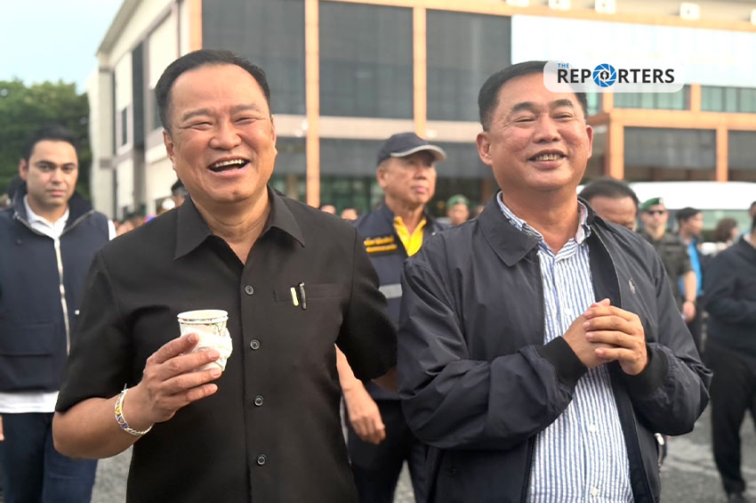 วันนี้ (10 ต.ค. 68) เวลา 17:05 น. ที่เขื่อนเจ้าพระยา ต.บางหลวง อ. สรรพยา จ.ชัยนาท นายอนุทิน ชาญวีรกูล นายกรัฐมนตรีและรัฐมนตรีว่าการกระทรวงมาไทย ให้สัมภาษณ์ถึงการลงพื้นที่ จ.ชัยนาท ที่มี นายอนุชา นาคาศัย สส.ชัยนาท พรรครวมไทยสร้างชาติ มาให้การต้อนรับ ว่า นอกจากมาดูเขื่อนแล้วจะมาชวนนายอนุชา กลับไปที่พรรคภูมิใจไทยหรือไม่ โดยนายอนุทิน ร้องโอ้โห และหันไปมองนายอนุชา ก่อนกล่าวว่า “ไม่รู้หรอว่า นอกจากภรรยาผมแล้ว ผมก็รักพี่แฮงค์เนี่ยเป็นที่ 2 ”