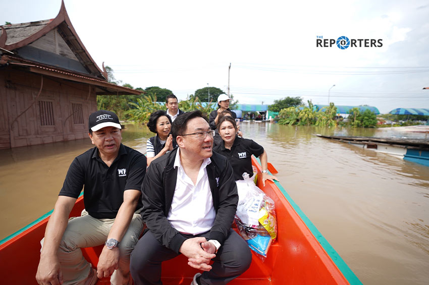 ‘เพื่อไทย’ ลงพื้นที่น้ำท่วม จ.อ่างทอง มอบถุงยังชีพให้กำลังใจชาวบ้าน