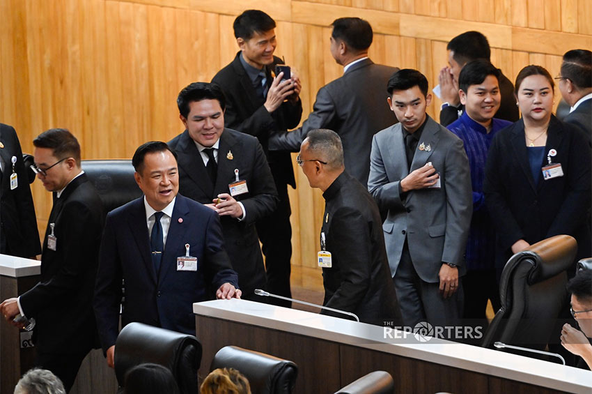 เวลา 09.55 น. นายอนุทิน ชาญวีรกูล นายกรัฐมนตรีและรัฐมนตรีว่าการกระทรวงมหาดไทย ในฐานะหัวหน้าพรรคภูมิใจไทย เดินทางมาถึงที่อาคารรัฐสภา เพื่อเข้าร่วมประชุม โดยทันทีที่นายอนุทินเข้าไปยังห้องประชุมได้ทักทายและพูดคุยบรรดา สว.และ สส. อาทิ นางมนพร เจริญศรี สส.นครพนม พรรคเพื่อไทย นางสาวธีรรัตน์ สําเร็จวาณิชย์ สส.กรุงเทพมหานคร พรรคเพื่อไทย