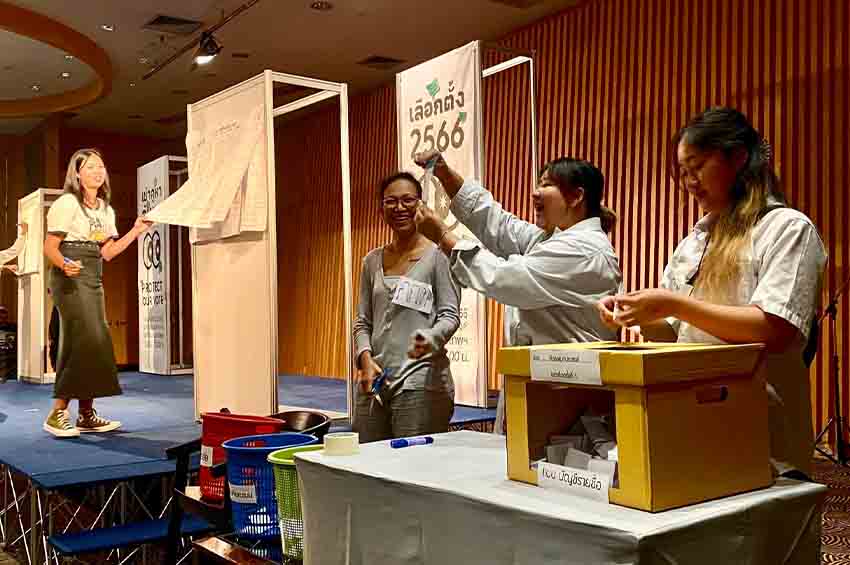 ‘เครือข่ายประชาชนสังเกตการณ์การเลือกตั้ง66’ จำลองการนับคะแนน-แถลงเรียกร้อง กกต. ทำงานโปร่งใส ชวนประชาชนจับตารายหน่วย