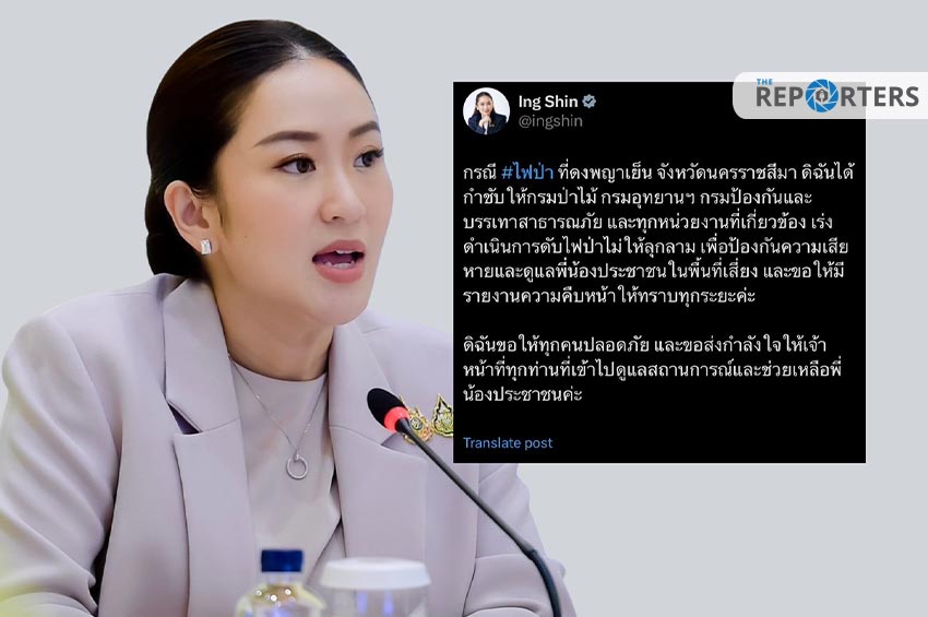 “กรณี #ไฟป่า ที่ดงพญาเย็น จังหวัดนครราชสีมา ดิฉันได้กำชับให้กรมป่าไม้ กรมอุทยานฯ กรมป้องกันและบรรเทาสาธารณภัย และทุกหน่วยงานที่เกี่ยวข้อง เร่งดำเนินการดับไฟป่าไม่ให้ลุกลาม เพื่อป้องกันความเสียหายและดูแลพี่น้องประชาชนในพื้นที่เสี่ยง และขอให้มีรายงานความคืบหน้าให้ทราบทุกระยะค่ะ