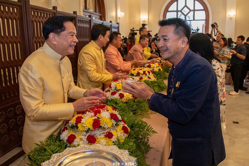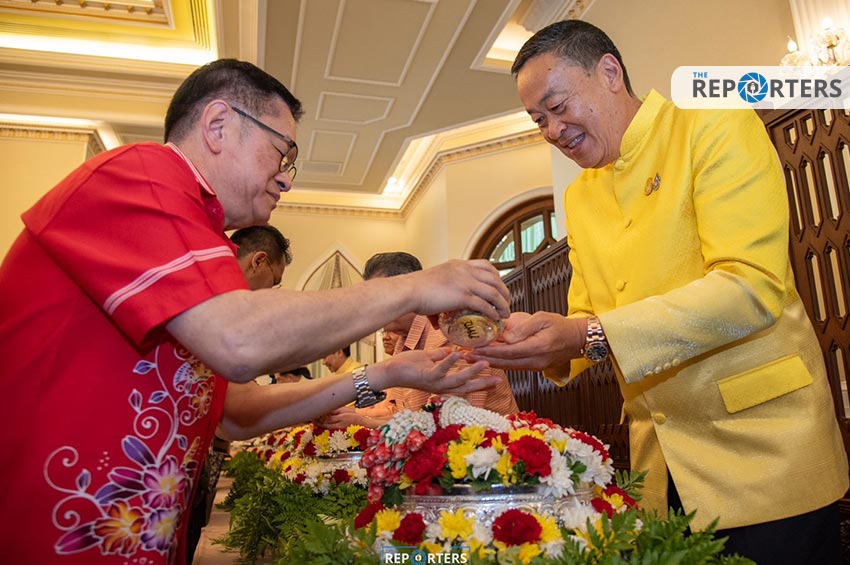 นายกฯ สักการะพระพรหม – ศาลตายาย ก่อนเปิดตึกภักดีบดินทร์ให้ รองนายกฯ – รมต. รดน้ำดำหัว