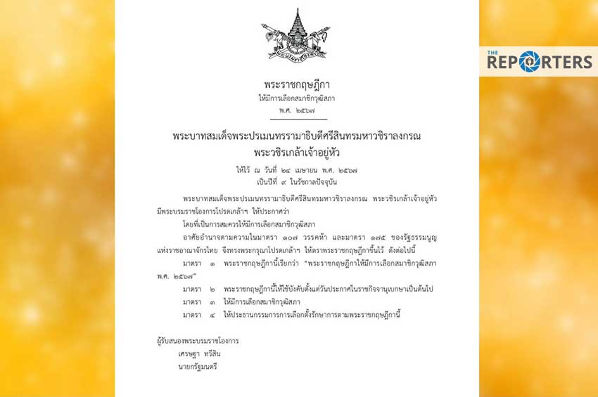 ในหลวงฯ โปรดเกล้าฯ ให้มี พระราชกฤษฎีกาเลือกตั้งสมาชิกวุฒิสภา 67