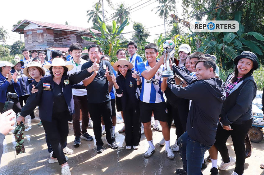 ‘อนุชา’ นำนักฟุตบอล รร.อบจ.ชัยนาท มอบถุงยังชีพ ให้กำลังใจผู้ประสบอุทกภัย