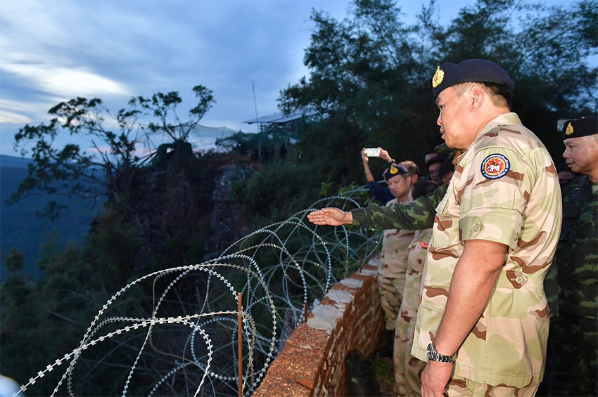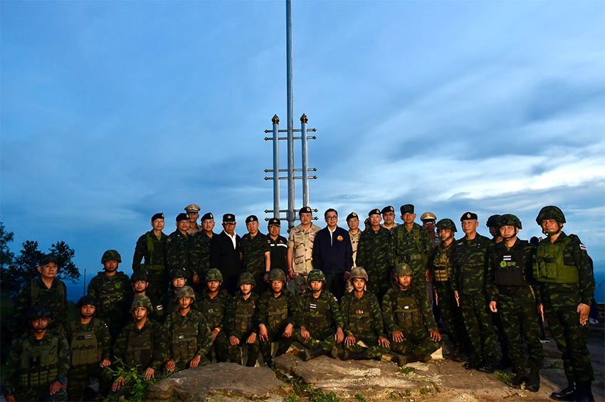 นายกฯ ขึ้น ’ภูมะเขือ‘ ร่วมร้องเพลงชาติ – ตรวจเยี่ยมกำลังพลแนวหน้า พร้อมรับรายงานสถานการณ์ทุ่นระเบิด พบเป็นทุ่นใหม่ ฝังไว้ไม่เกิน 1 วันก่อนเกิดเหตุ กล่าวชื่นชม – ให้กำลังใจทหาร ชี้ สิ่งที่ทำเป็นวีรกรรมหาญกล้า ขอให้ระมัดระวังตัวอยู่ตลอด