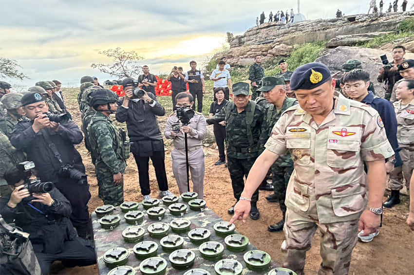 วันนี้ (11 พ.ย. 68) เวลา 18:00 น. ที่ฐานปฏิบัติการอินทุมาน (ภูมะเขือ) อำเภอกันทรลักษณ์ จังหวัดศรีสะเกษ นายอนุทิน ชาญวีรกูล นายกรัฐมนตรีและรัฐมนตรีว่าการกระทรวงมหาดไทย เดินทางมาเพื่อตรวจเยี่ยมการปฏิบัติงานของกองกำลังแนวหน้า พร้อมรับฟังบรรยายสรุปสถานการณ์ที่ทหารเหยียบทุ่นระเบิด จนได้รับบาดเจ็บ 3 นาย และทหารที่ต้องเสียขาจากการเหยียบทุ่นระเบิด 1 นาย ซึ่งทหารในพื้นที่ได้มีการเก็บกู้ทุ่นระเบิดจำนวน 3 ทุ่น และถูกนายทหารเหยียบอีก 1 ทุ่น