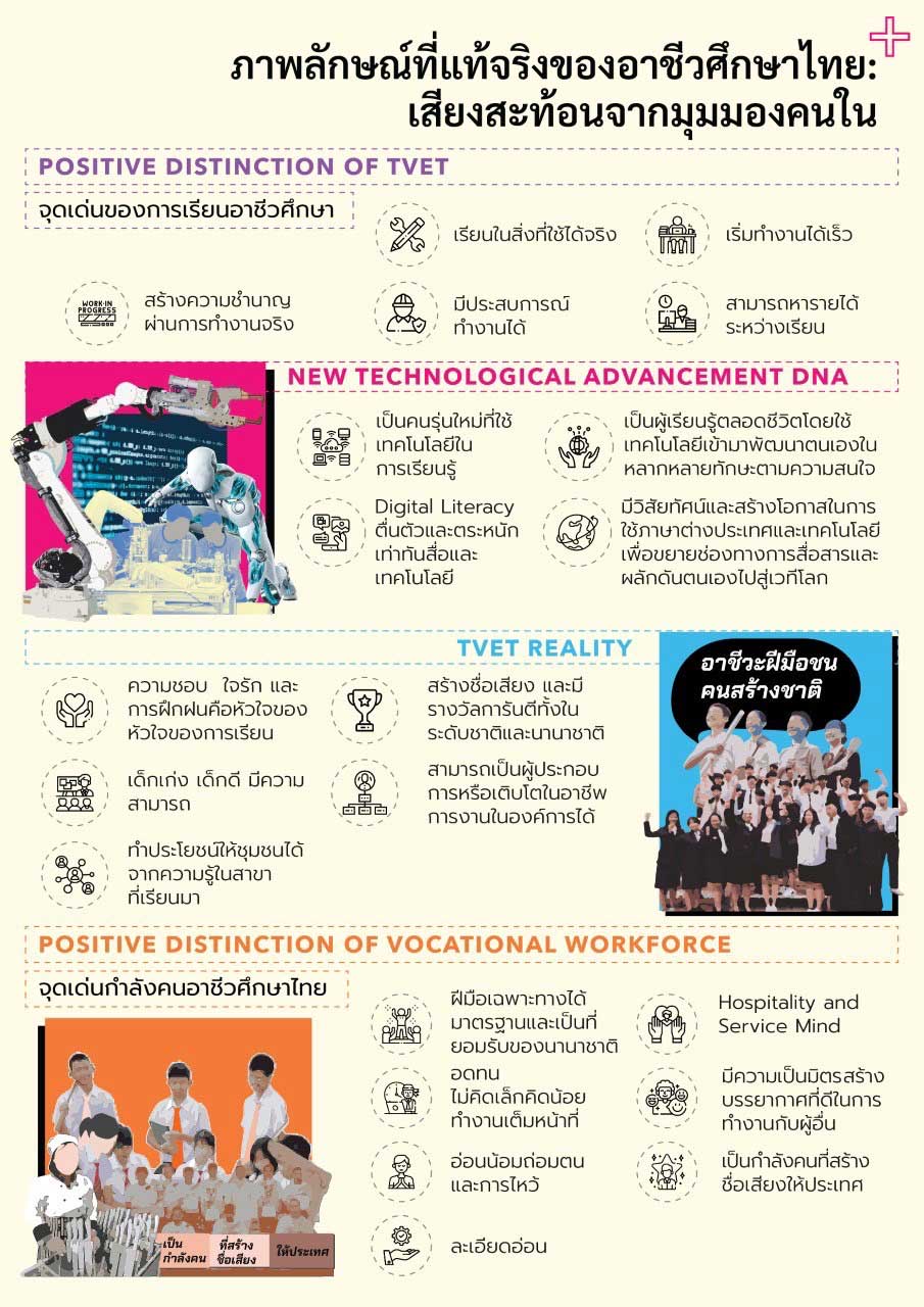“เราต้องการฉายภาพลักษณ์ในเชิงบวก จุดแข็ง และเอกลักษณ์ของแรงงานอาชีวศึกษาไทยที่มาจากมุมมองของ ‘คนใน’ เพื่อให้สังคมเห็นภาพของอาชีวศึกษาที่รอบด้านมากขึ้น ที่ไม่ได้มีเพียงการทะเลาะวิวาทดังในภาพข่าว” รศ.ดร.จุลนี กล่าว