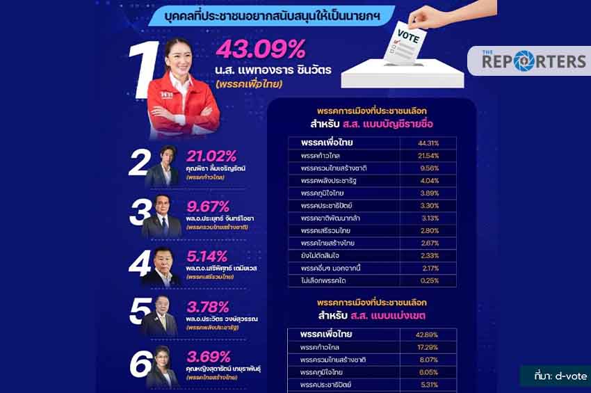 ศรีปทุม-ดีโหวต เผยผลสำรวจความนิยมทางการเมือง ชี้ ‘เพื่อไทย’ นำโด่งทุกหมวด