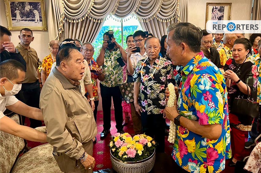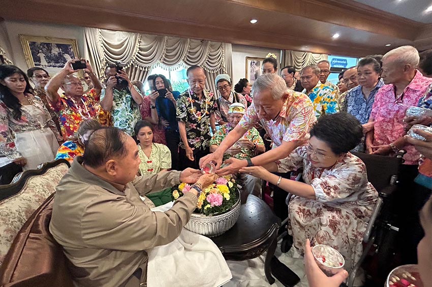 ‘พล.อ.ประวิตร’ ยิ้มแย้มหลังเพื่อนเตรียมทหารรุ่น 6 รดน้ำขอพรสงกรานต์ ปัดตอบข่าวลือรีเทิร์น ครม. นั่ง รองนายกฯ ฝ่ายความมั่นคง