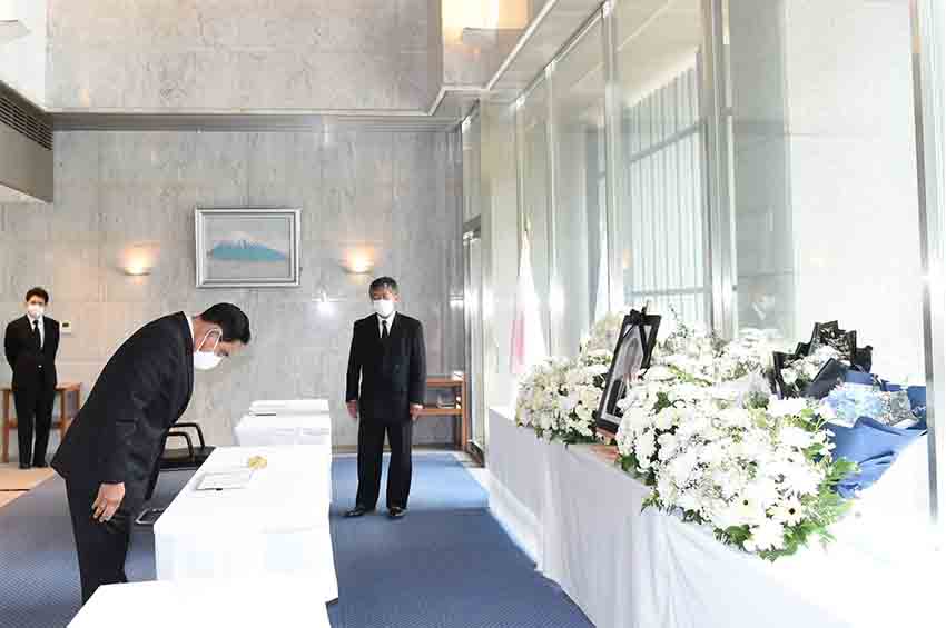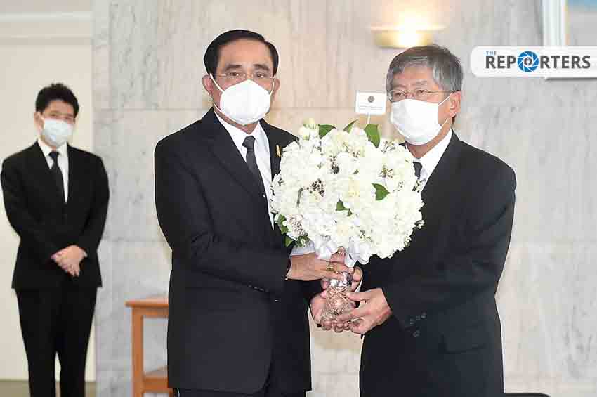 โดยในโอกาสนี้ นายกรัฐมนตรีได้ทักทายพูดคุยหารือกับนายนะชิดะ คะสุยะ (H.E. Mr. Nashida Kazuya) เอกอัครราชทูตวิสามัญผู้มีอำนาจเต็มแห่งญี่ปุ่น ประจำราชอาณาจักรไทย แสดงความเสียใจในนามประเทศและประชาชนไทย พร้อมกับได้มอบแจกันดอกไม้ แสดงความเสียใจในโอกาสนี้ด้วย