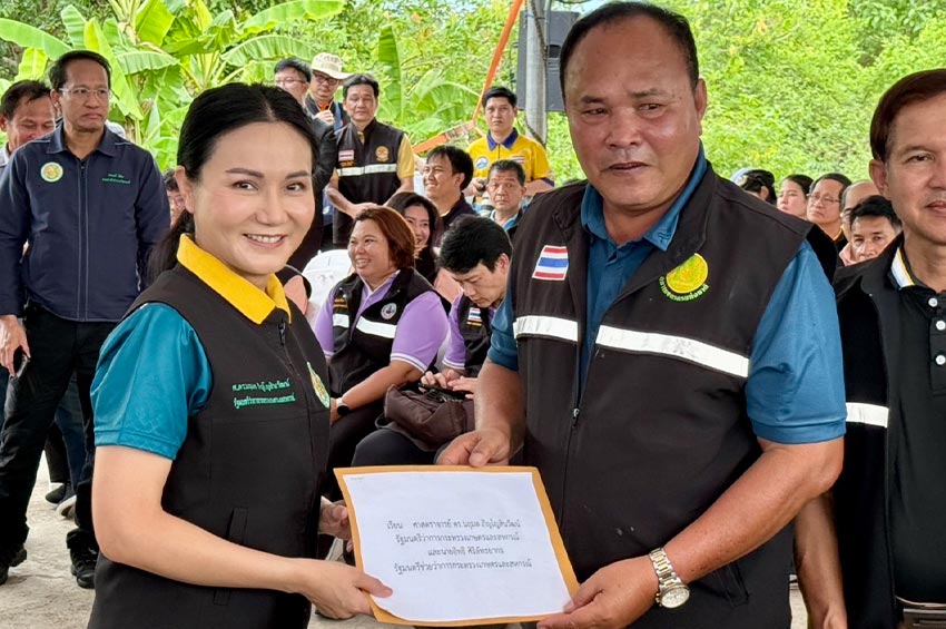 ในโอกาสนี้ ศ.ดร.นฤมล นำคณะผู้บริหารสังกัดกระทรวงเกษตรฯ มอบโฉนดเพื่อการเกษตร 200 ราย ปัจจัยการผลิต 300 ชุด ท่อนพันธุ์และเมล็ดพันธุ์พืชอาหารสัตว์ 50 ชุด รวมถึงพันธุ์ปลากระพงขาว 6,000 ตัว แก่ตัวแทนเกษตรกรผู้มาร่วมงานด้วย
