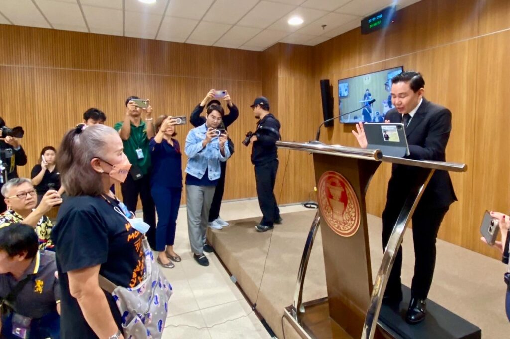 สำหรับบรรยากาศก่อนการแถลงข่าว มี สส.พรรคประชาชน ลงมาสังเกตการณ์ คือ ครูจวง นายปารมี ไวจงเจริญ สส.บัญชีรายชื่อ รวมถึงประชาชน ที่มาดักรอสังเกตการณ์ ก่อนรุมต่อว่า นางสาวกฤษฎิ์