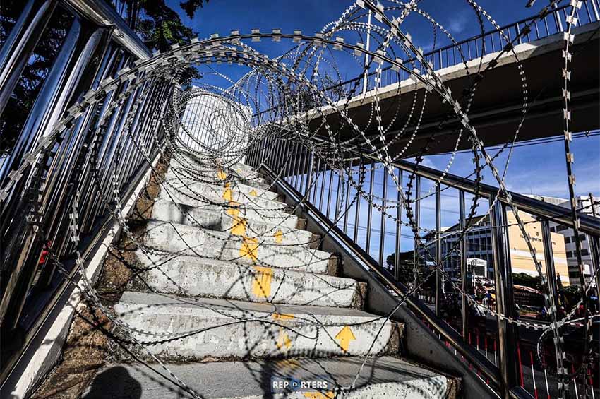 นอกจากนี้บริเวณสะพานลอยแยกเกียกกาย มีการวางรั้วลวดหนาม และปิดทางขึ้นด้วย