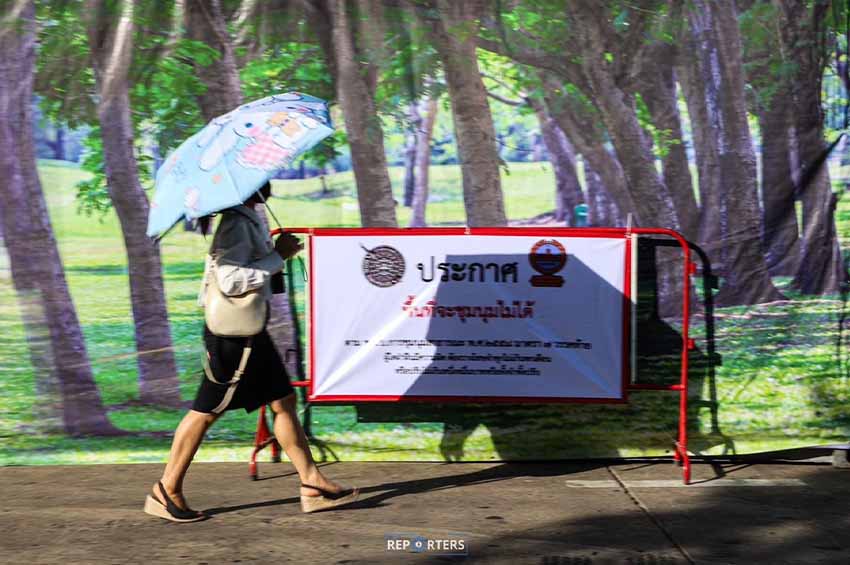 มวลชนก้าวไกลเริ่มปักหลักหน้าศูนย์ราชการ ในจุดที่ กทม.ให้ชุมนุมได้