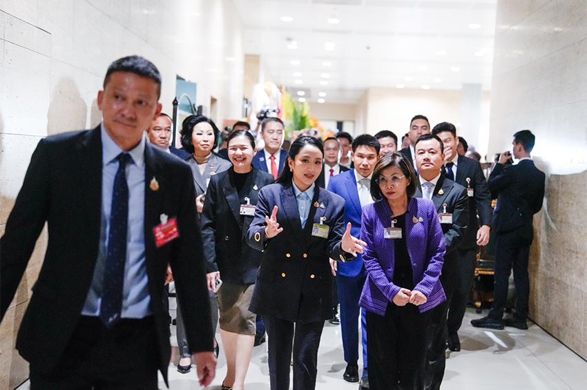 ‘แพทองธาร’ เข้าสภา ให้กำลังใจ สส.เพื่อไทยพิจารณางบฯ 69 ยิ้มรับ หลังสื่อซักกำลังใจยังดีหรือไม่