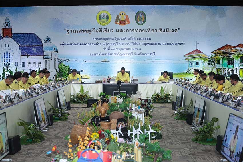 เปิดภาพ นายกฯ พร้อมคณะรัฐมนตรี สวมเสื้อลาย ‘สุวรรณวัชร์’ ถ่ายภาพหมู่ร่วมกัน ก่อนประชุม ครม. สัญจร จ.เพชรบุรี ภายใต้หัวข้อ ”ฐานเศรษฐกิจสีเขียว และการท่องเที่ยวเชิงนิเวศ“
