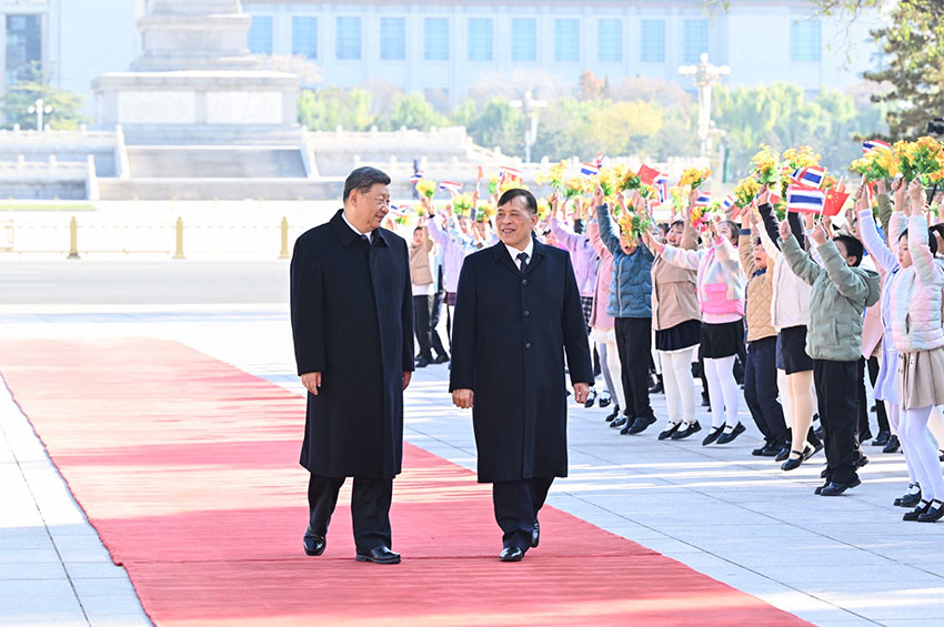 วันนี้ (14 พ.ย. 68) สีจิ้นผิง ประธานาธิบดีจีน ได้จัดพิธีต้อนรับ พระบาทสมเด็จพระวชิรเกล้าเจ้าอยู่หัว ซึ่งเสด็จพระราชดำเนินเยือนสาธารณรัฐประชาชนจีนอย่างเป็นทางการ ต่อจากนั้นสีจิ้นผิง พร้อมด้วยเผิงลี่หยวน ผู้เป็นภริยา ได้พบปะหารือกับพระบาทสมเด็จพระวชิรเกล้าเจ้าอยู่หัว และสมเด็จพระนางเจ้าฯ พระบรมราชินี ณ อาคารมหาศาลาประชาชนในกรุงปักกิ่ง