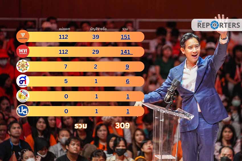 ก้าวไกล เพื่อไทย ประชาชาติ ไทยสร้างไทย เสรีรวมไทย เป็นธรรม รวมได้ 309 เสียง