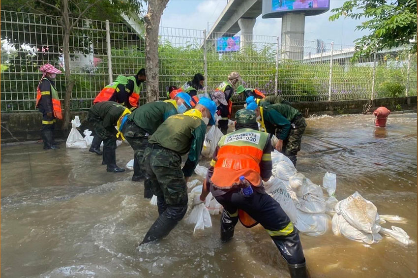 โดยระดมกำลังทหาร เครื่องจักรและเครื่องมือช่างจากทุกเหล่าทัพเข้าพื้นที่วิกฤต สนับสนุนเร่งกำจัดขยะและวัชพืชจำนวนมากที่ขวางทางน้ำและประตูระบายน้ำออก เพื่อให้การระบายน้ำลงแม่น้ำสายหลักได้เร็วและมากขึ้น รองรับสถานการณ์สภาพอากาศที่ยังผันแปร โดยเฉพาะในพื้นที่ กรุงเทพมหานครและปริมณฑล ที่ทุกเหล่าทัพยังคงสนับสนุน กทม.อย่างใกล้ชิด โดยเฉพาะการช่วยเร่งเก็บสวะ เศษขยะ จากท่อและทางระบายที่อุดตัน เร่งสูบและผลันดันน้ำลงคลองสายหลัก รวมทั้งจัดยานพาหนะเสริมรับประชาชน จากจุดขนส่งสาธารณะเข้าพื้นที่พักอาศัย