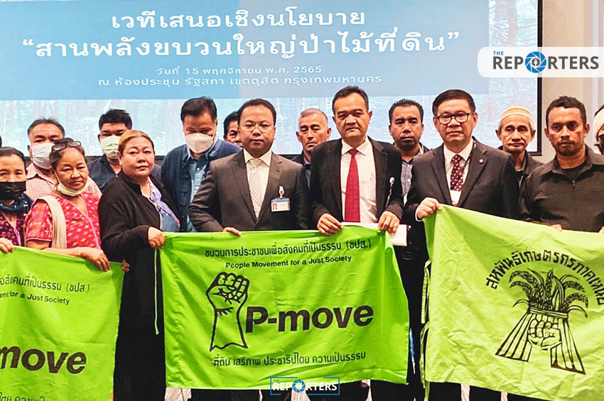 วันนี้ (15 พ.ย. 65) ขบวนการประชาชนเพื่อสังคมที่เป็นธรรม (P-Move), ขบวนเครือข่ายชาติพันธุ์กะเหรี่ยงและชาวเล, ขบวนเครือข่ายที่ดินเทือกเขาบูโด-สุไหงปาดี และขบวนเครือข่ายที่ดินแนวใหม่ชุมชนท้องถิ่นจัดการตนเองแห่งชาติ จัดเวทีเสนอเชิงนโยบาย “สานพลังขบวนใหญ่ป่าไม้ที่ดิน” ที่ห้องประชุมบี 1-1 อาคารรัฐสภา เพื่อเสนอปัญหาของกลุ่มชาวบ้านที่ถูกลิดรอนสิทธิในที่ดินทำกิน ที่อยู่อาศัยจากนโยบายของรัฐ ที่มักมาประกาศพื้นที่อุทยานหรือพื้นที่อื่นๆทับซ้อนที่ดินทำกินหรือที่อยู่อาศัยดั้งเดิม ซึ่งมีกลุ่มชุมชนที่มีปัญหาในเรื่องนี้อยู่ทั่วทุกภูมิภาคของประเทศไทย เป็นกลุ่มคนชายขอบที่มักไม่ได้รับการเหลียวแลจากรัฐหรือสังคม