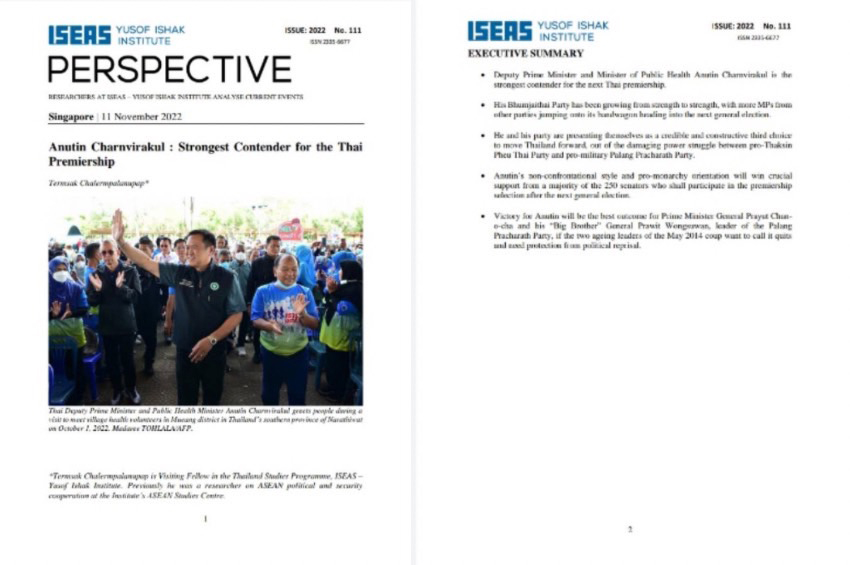 วันนี้ (15 พ.ย. 65) ผู้สื่อข่าวรายงานว่า สถาบันเอเชียตะวันออกเฉียงใต้ศึกษา ยูซอฟ อิสฮะก์ แห่งประเทศสิงคโปร์ ได้เผยแพร่บทความ โดย ดร.เติมศักดิ์ เฉลิมพลานุภาพ ภายใต้หัวข้อ “อนุทิน ชาญวีรกูล : ผู้ท้าชิงตำแหน่งผู้นำประเทศไทย ที่เข้มแข็งที่สุด” เมื่อวันที่ 11 พฤศจิกายนที่ผ่านมา ระบุว่า