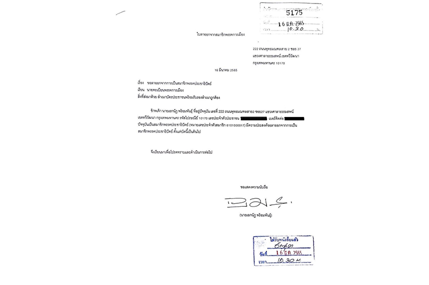 “วันนี้ผมได้ยื่นขอลาออกจากการเป็นสมาชิกพรรคประชาธิปัตย์ ขออนุญาตกราบลาจากพรรคฯ แม้จะเป็นการตัดสินใจที่ยาก แต่ผมขอคงไว้ซึ่งความเคารพ ความรักและผูกพันธ์ เต็มไปด้วยความทรงจำดีๆตลอดไปครับ”
