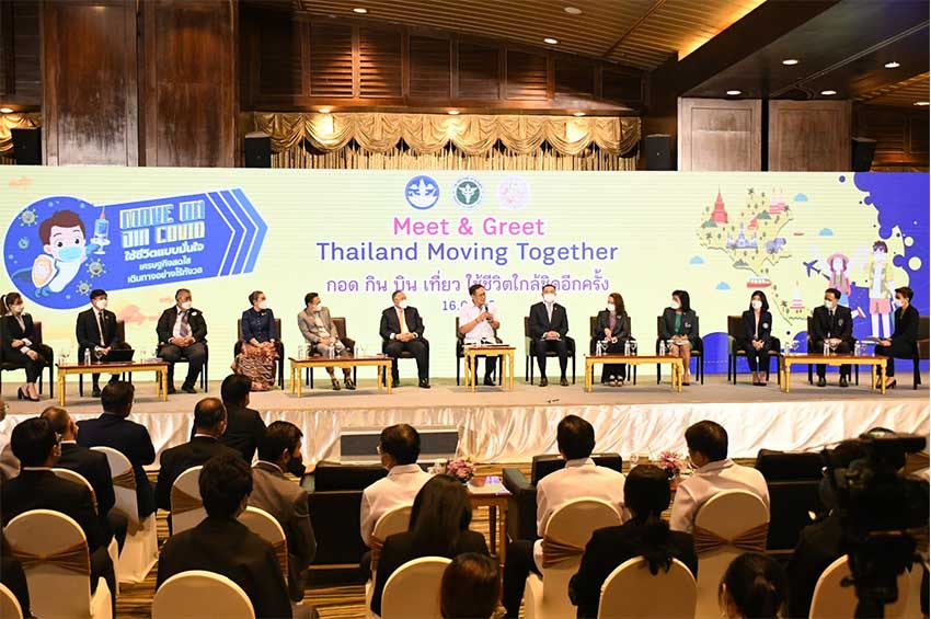 วันนี้ (16 มิ.ย. 65) นายอนุทิน ชาญวีรกูล รองนายกรัฐมนตรีและรัฐมนตรีว่าการกระทรวงสาธารณสุข เป็นประธานเปิดงาน Meet & Greet “Thailand Moving Together : กอด กิน บิน เที่ยว ใช้ชีวิตใกล้ชิดอีกครั้ง” โดยมี นายศักดิ์สยาม ชิดชอบ รัฐมนตรีว่าการกระทรวงคมนาคม นายสิรภพ ดวงสอดศรี ที่ปรึกษารัฐมนตรีว่าการกระทรวงท่องเที่ยวและกีฬา นายชยธรรม์ พรหมศร ปลัดกระทรวงคมนาคม นายโชติ ตราชู ปลักกระทรวงการท่องเที่ยวและกีฬา และภาคธุรกิจการท่องเที่ยวและคมนาคมเข้าร่วม