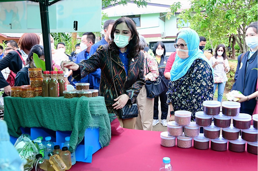 โอกาสนี้ รมช.มนัญญา ได้มอบใบรับรองมาตรฐานสินค้าเกษตรด้านพืช GAP ให้กับเกษตรกรจำนวน 10 ราย มอบปัจจัยการผลิตทางการเกษตรชีวภาพ-ชีวภัณฑ์ จำนวน 10 ราย และมอบต้นกล้ากัญชาให้กลุ่มเกษตรกร จำนวน 2,000 ต้น จากนั้น เยี่ยมชมนิทรรศการกัญชง กัญชา และกระท่อม เยี่ยมชมงานแสดงสินค้ามาตรฐาน GAP และเกษตรอินทรีย์ เยี่ยมชมศูนย์เรียนรู้พืชแบบผสมผสาน และการขยายผลเทคโนโลยีการใช้ชีวภัณฑ์และปุ๋ย และร่วมปลูกต้นกัญชา พันธุ์พื้นเมืองหางกระรอก ร่วมกับผู้บริหาร และหัวหน้าส่วนต่างๆ