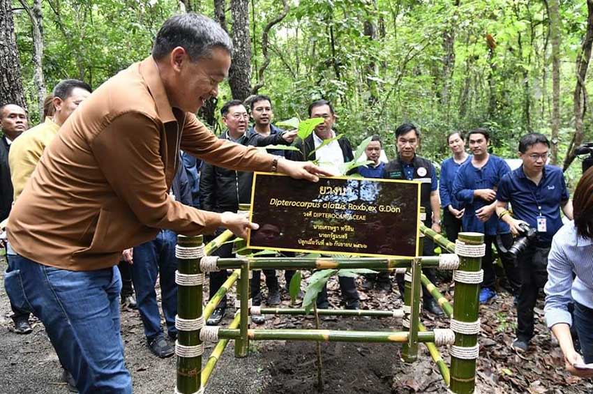 นายกรัฐมนตรีได้ปลูกต้นยางนาเป็นที่ระลึก ซึ่งต้นยางนาเป็นต้นไม้ที่ถือเป็นตัวชี้วัดว่าพื้นที่ป่ามีความชื้น อุดมสมบูรณ์ ซึ่งบริเวณดังกล่าวอยู่ใกล้เคียงกับจุดที่นางสาวยิ่งลักษณ์ชินวัตร อดีตนายกฯ ได้เคยมาปลูกต้นไม้ไว้ เมื่อปี 2555