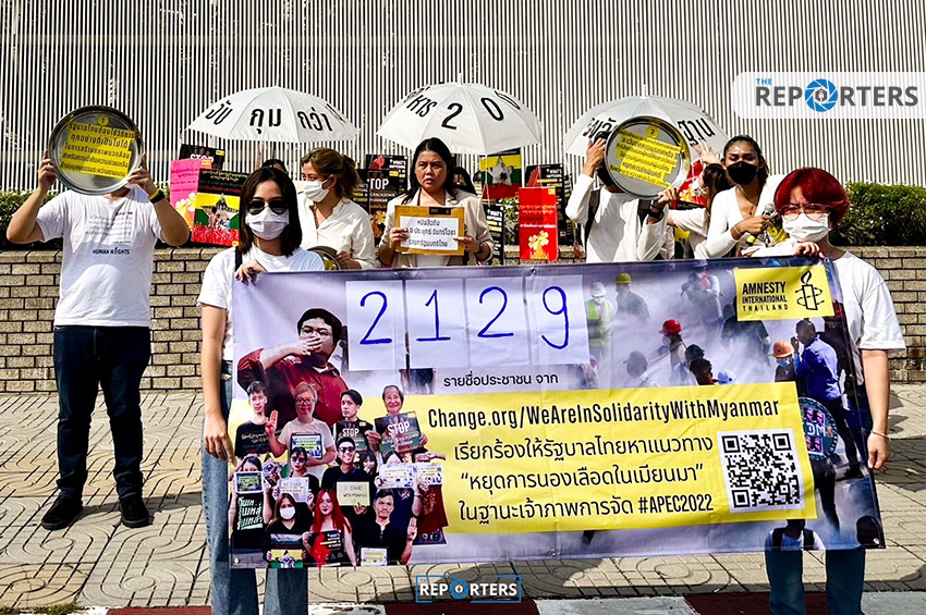 “กองทัพเมียนมาเพิกเฉยต่อเสียงเรียกร้องให้เคารพสิทธิมนุษยชน อีกทั้งยังเพิกเฉยต่อ ‘ฉันทามติ 5 ข้อ’ ของอาเซียน ซึ่งเมื่อเดือนเมษายน 2564 ทางกองทัพเมียนมารับปากว่าจะดำเนินการตาม แต่ก็ล้มเหลวและไม่สามารถหยุดกองทัพกองทัพเมียนมาในการละเมิดสิทธิมนุษยชนที่มากขึ้นต่อประชาชนชาวเมียนมาได้ ทางการไทยในฐานะรัฐภาคีอาเซียนและในฐานะเจ้าภาพจัดการประชุมเอเปกต้องแสดงท่าทีอย่างเร่งด่วนต่อการละเมิดสิทธิมนุษยชนมนุษยชนที่เกิดขึ้นในเมียนมา ทั้งการการสนับสนุนให้เข้าถึงความช่วยเหลือด้านมนุษยธรรมที่จำเป็นอย่างยิ่ง รวมทั้งการไม่บังคับส่งกลับผู้ขอลี้ภัยและผู้ลี้ภัยที่หลบหนีมาจากความรุนแรง และต้องให้การประกันว่าภาคธุรกิจหรือรัฐวิสาหกิจของไทยจะไม่มีส่วนเกี่ยวข้องกับกองทัพเมียนมา และหน่วยงานในเครือในฐานะผู้ละเมิดสิทธิมนุษยชน และต้องเรียกร้องให้กองทัพเมียนมารับฟังเสียงจากประชาชนชาวเมียนมาซึ่งเป็นผู้มีส่วนได้ส่วนเสียหลักด้วย”