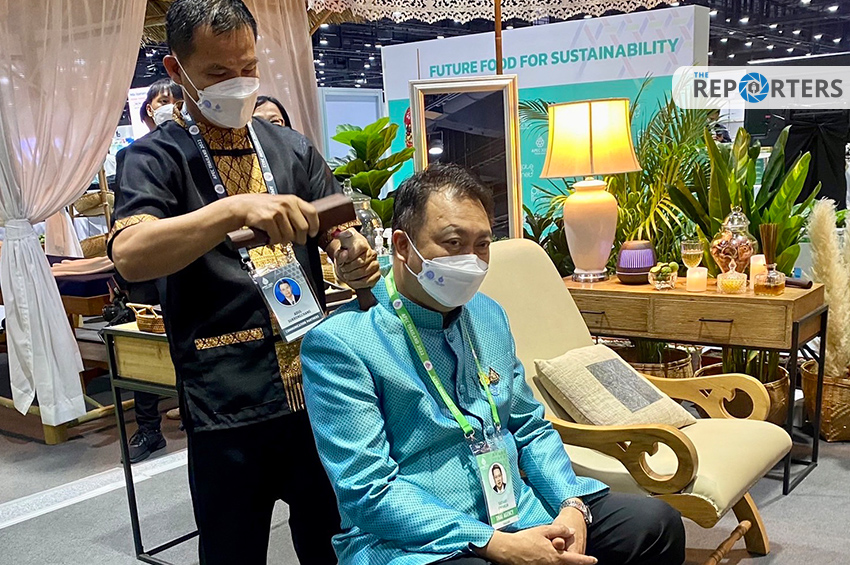นายสุชาติ ให้สัมภาษณ์ก่อนเข้าเยี่ยมชมว่า เมื่อคราวเตรียมการประชุมครั้งนี้ พลเอก ประยุทธ์ จันทร์โอชา นายกรัฐมนตรี สั่งการให้กรมพัฒนาฝีมือแรงงาน นำภูมิปัญญานวดแผนไทยนำมาแสดงต่อสื่อมวลชนต่างชาติได้เห็นว่ามีซอฟต์พาวเวอร์อะไรบ้าง และช่วยประชาสัมพันธ์เผยแพร่ไปยังทั่วโลก
