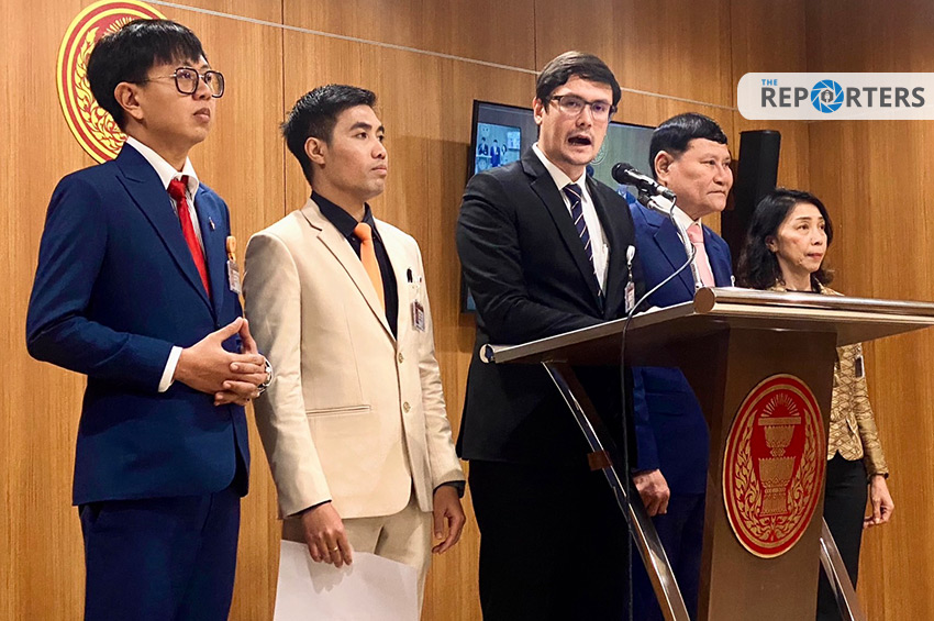 วันนี้ (16 พ.ย. 66) นายรังสิมันต์ โรม สมาชิกสภาผู้แทนราษฎร (สส.) แบบบัญชีรายชื่อ พรรคก้าวไกล ในฐานะประธานกรรมาธิการความมั่นคงแห่งรัฐ กิจการชายแดนไทย ยุทธศาสตร์ชาติ และการปฏิรูปประเทศ สภาผู้แทนราษฎร นำกรรมาธิการฯ แถลงข่าวกับสื่อมวลชน ณ อาคารรัฐสภา ภายหลังการประชุมคณะกรรมาธิการฯ ครั้งที่ 7 เพื่อพิจารณาการช่วยเหลือคนไทยในเมืองเล้าก์ก่าย สาธารณรัฐแห่งสหภาพเมียนมา