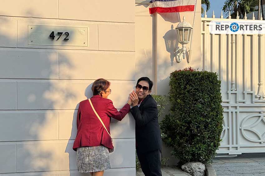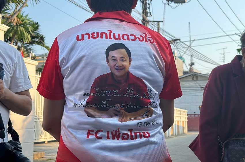 คนเสื้อแดงบุกกอดเสาบ้านจันทร์ส่องหล้า ดีใจ ‘ทักษิณ’ ได้พักโทษ