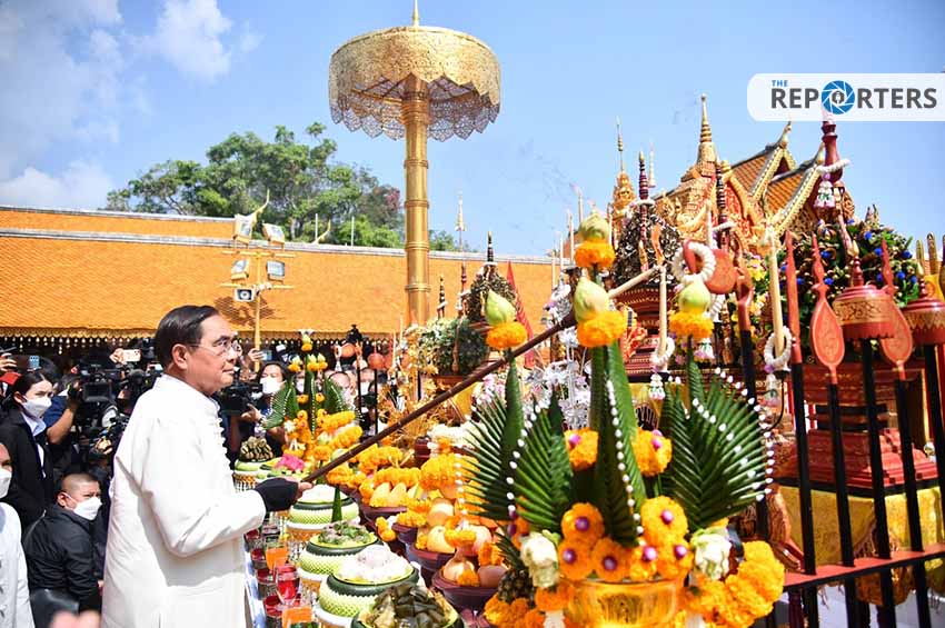 นายกรัฐมนตรี ขึ้นดอยสุเทพ สักการะ - ห่มผ้า พระธาตุ ก่อนเข้าพิธีโบราณ ‘ฮ้องขวัญ’