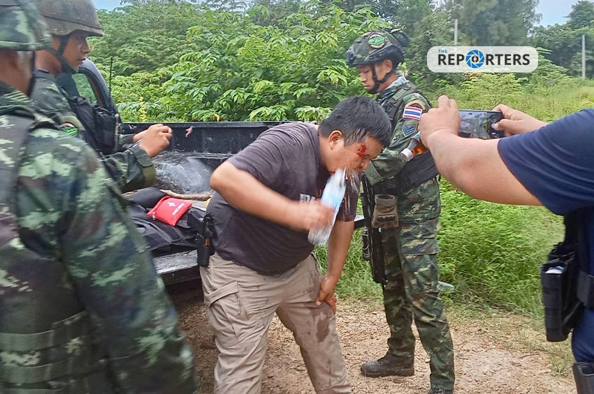 ล่าสุดเจ้าหน้าที่ตำรวจของไทยบาดเจ็บ 2 นายจากถูกกัมพูชาปาก้อนหิน ได้นำผู้บาดเจ็บส่งโรงพยาบาลแล้ว เหตุการณ์ยังคงรุนแรงอย่างต่อเนื่อง