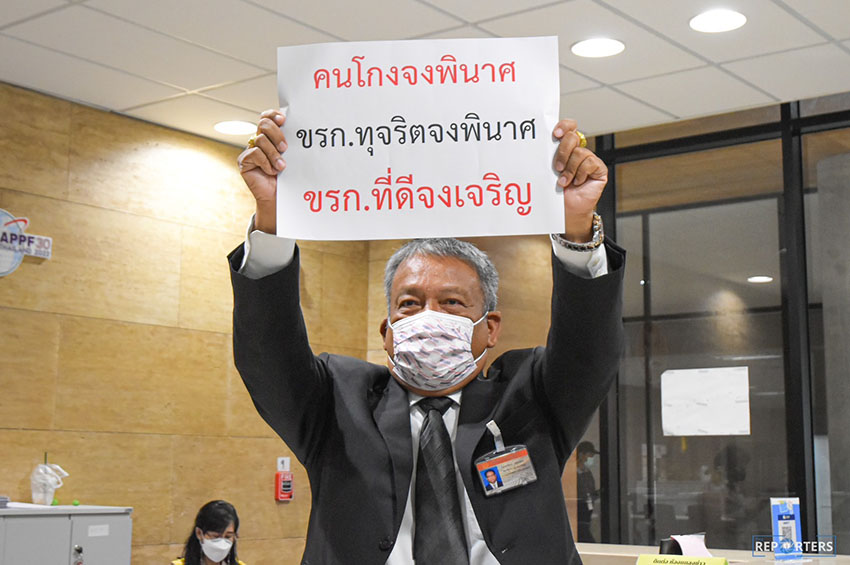 ซึ่งภายหลังจากนายวัชระ แถลงข่าวจบ ไม่มีผู้สื่อข่าวซักถาม แต่นายสาธิตซึ่งมาร่วมฟังแถลงในครั้งนี้ได้เดินขึ้นไปบนโพเดียมเพื่อชี้แจง และถามนายวัชระ ถึงข้อความที่ว่าข้าราชการทุจริตจงพินาศคือใคร นายวัชระ ตอบว่า ใครที่ทุจริตก็เป็นข้าราชการที่ทุจริตและจงพินาศ แต่ตนไม่สามารถระบุเป็นตัวบุคคลได้ ขณะนี้ข้าราชการที่ทุจริตก็ถูก ป.ป.ช.ตั้งคณะกรรมการไต่สวนแล้วถึง 2 คน
