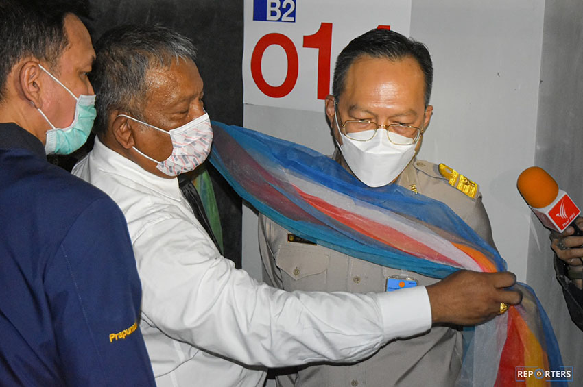 ก่อนแถลงข่าวนายวัชระได้ชูป้าย “คนโกงจงพินาศ ขรก.ทุจริตจงพินาศ ขรก.ที่ดีจงเจริญ” และชูผ้า 7 สีที่จะนำไปผูกตอม่อที่มีปัญหา พร้อมพูดคุยกับนายสาธิตที่มาร่วมฟังว่าวันนี้นายสาธิต ลงมาฟังแถลงข่าวด้วย ด้านนายสาธิตตอบกลับไปว่า “พื้นที่ตรงนี้เป็นที่ของผม”