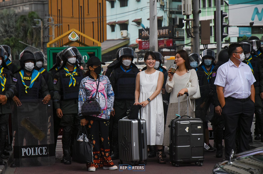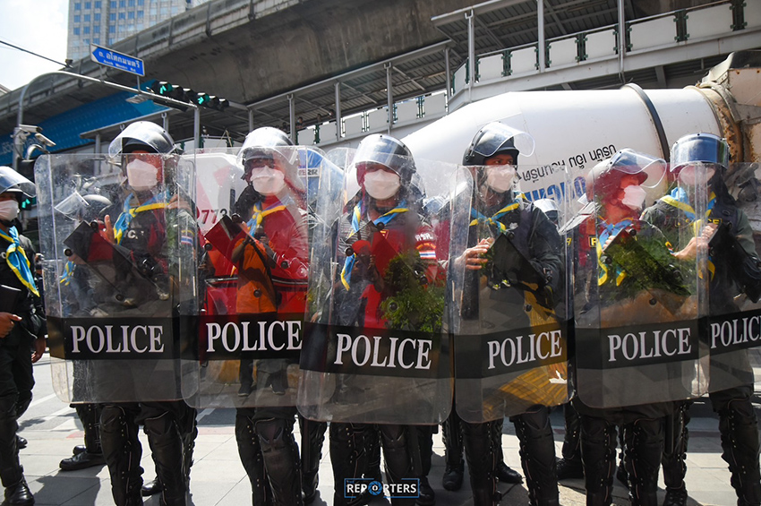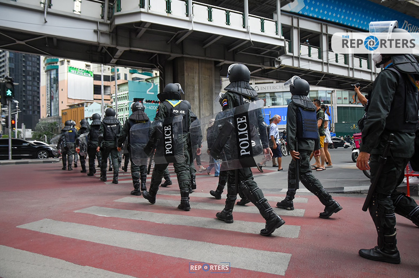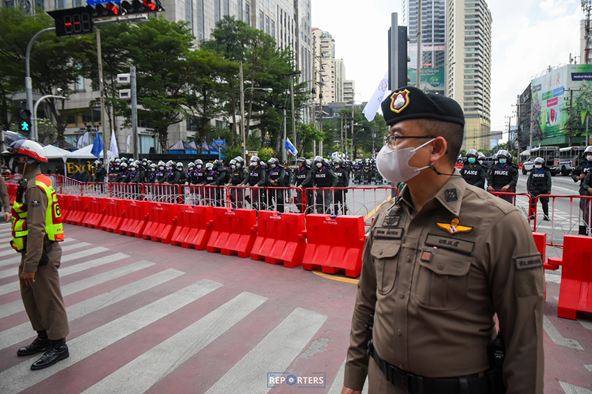 เจ้าหน้าที่ตรึงกำลังเข้มรอบแยกอโศกมนตรีก่อนการมวลชนนัดชุมนุมในเวลา 12:00 น.