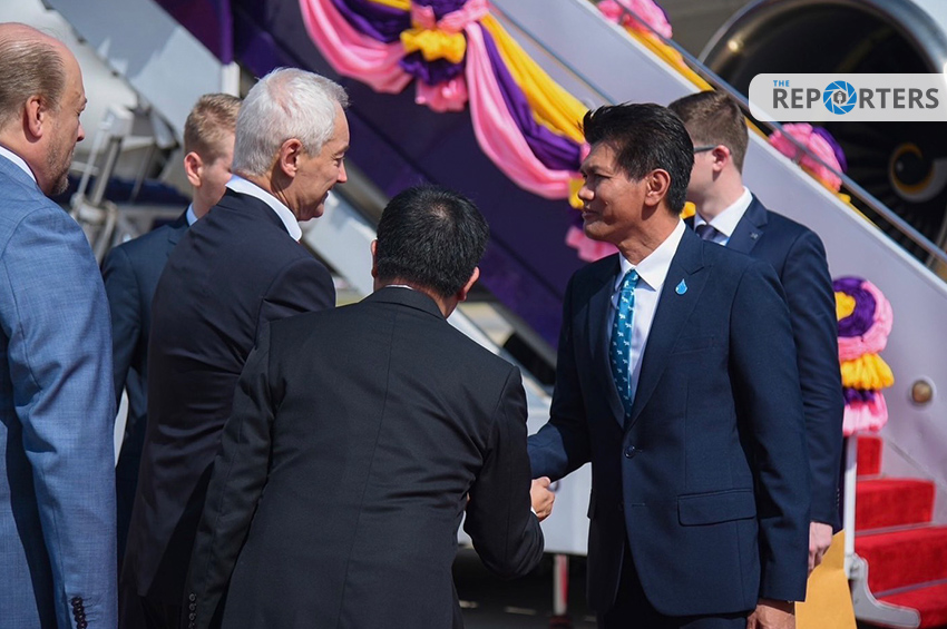 รองนายกรัฐมนตรี ‘รัสเซีย’ เดินทางถึงไทยแล้ว เข้าร่วมประชุมเอเปคแทน ‘ปูติน’ รมช.สธ. ต้อนรับที่สนามบิน