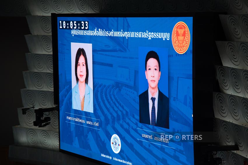 ผู้สื่อข่าวรายงานว่าก่อนเข้าวาระการพิจารณาเรื่องด่วน พลเอกเกรียงไกร แจ้งต่อที่ประชุมว่า ตำแหน่งตุลาการศาลรัฐธรรมนูญ 2 คน แทนตำแหน่งที่ว่าง ได้แก่ ศ.ดร.สิริพรรณ นกสวน สวัสดี อาจารย์ประจำคณะรัฐศาสตร์ จุฬาลงกรณ์มหาวิทยาลัย และนายชาตรี อรรจนานันท์ อดีตอธิบดีกรมการกงสุล และอดีตเอกอัครราชทูต ประจำกรุงเฮก ประเทศเนเธอร์แลนด์ ซึ่งคณะกรรมาธิการวิสามัญได้ดำเนินการตรวจสอบประวัติความประพฤติและพฤติกรรมทางจริยธรรมของบุคคลที่ได้รับการเสนอชื่อรวมถึงรวบรวมข้อเท็จจริงและพยานหลักฐานเสร็จเรียบร้อยแล้ว