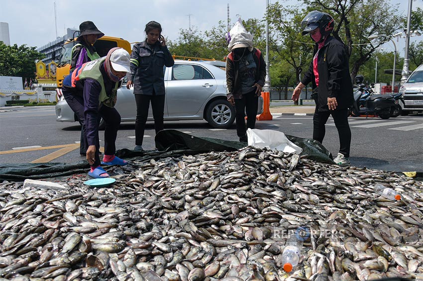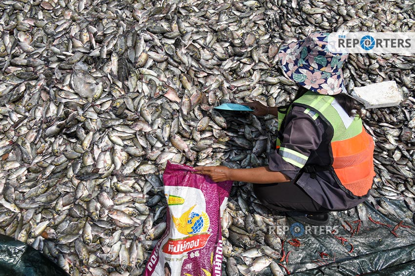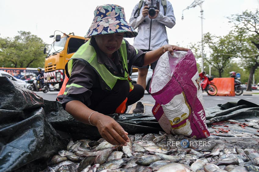 โดยช่างภาพ The Reporters รายงานว่า เมื่อเวลา 14:02 น. มีรถของกรมประมง ทำการขนปลาหมอคางดำขึ้นรถและมีเจ้าหน้าที่การทำความสะอาดพื้นถนน